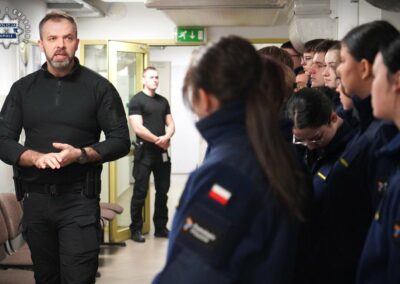 Po zakończeniu działań profilaktycznych uczniowie odwiedzili Komendę Wojewódzką Policji w Opolu, gdzie mieli zaszczyt spotkać się z nadinsp. Magdaleną Nguyen-Fudalą, Komendant Wojewódzką Policji w Opolu. Spotkanie było doskonałą okazją do rozmowy na temat specyfiki służby w Policji, zadań formacji oraz możliwych ścieżek kariery zawodowej dla absolwentów klas mundurowych.