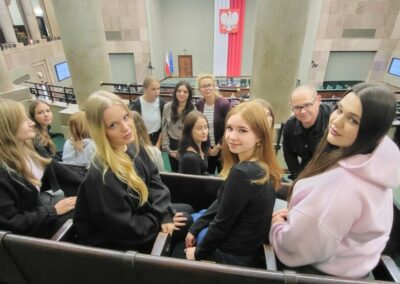 Uczniowie naszego liceum mieli wyjątkową okazję odwiedzić Sejm Rzeczypospolitej Polskiej – serce polskiej demokracji i miejsce, gdzie zapadają najważniejsze decyzje dotyczące życia obywateli. Podczas wizyty młodzież zapoznała się z historią polskiego parlamentaryzmu, zwiedziła najważniejsze miejsca w budynku Sejmu, w tym Salę Posiedzeń, gdzie odbywają się obrady. Wizyta była nie tylko lekcją wiedzy o społeczeństwie, ale także inspiracją do aktywnego uczestnictwa w życiu publicznym.